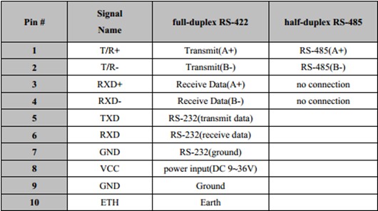 RS-232/RS-485/422 (with the terminal connectors) Terminal Pin Assignment