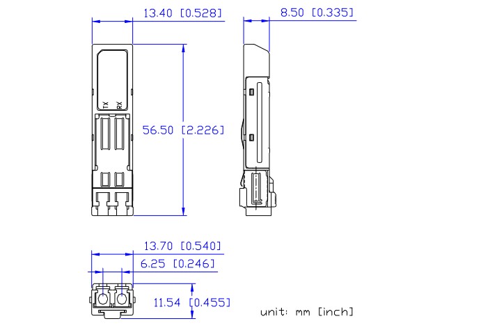 The SFP transceiver is compliant with the specifications the SDH/SONET/IEEE802.3 and the Small Form-Factor Pluggable (SFP) Multi-Source Agreement (MSA) and SFF-8472. Its’ reliability is benefitted by virtue of being hot-pluggable. Further, it incorporates the latest 3.3 VDC compatible transceiver technology including an 850nm/1310nm/1550nm FP/DFB LD transmitter as well as a convenient LC-Duplex optical interface.