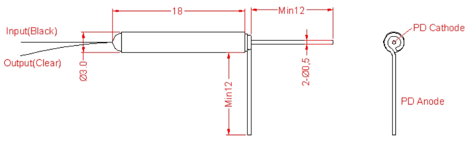 - PD Dark Current: ≤1.0 (@25℃, 5V bias) nA