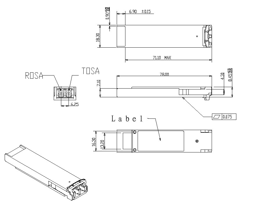 - Wavelength selectable to ITU-T standards covering CWDM grid wavelengthsXFP MSA Compliant