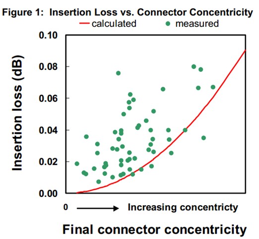 The curve in Figure 1 is calculated insertion loss expected solely by connector concentricity. A