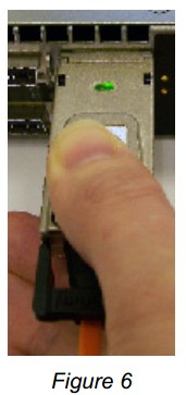 4. To remove the connector from the port perform the installation in reverse order. Starting to pull the handle causes the cable to detach. Ensure that the latch is then back in its locked position prior to installation into another port. Refer to Figure 8.